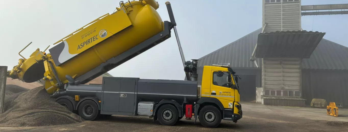 - Principe : Grâce à une pompe à vide puissante le camion aspire les matières fines (sciure, poussière, cendres) mais aussi des boues épaisses ou des liquides.